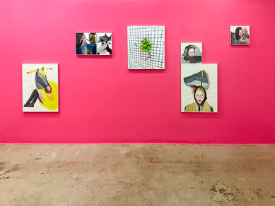 These are fragments that have their roots in self-portrait photographs of Fallahfar and photographs of her personal space, fused together in the process of creation. Elimination of spatial characteristics and the use of flat colors, connect these fragments. The relationship between humans and animal became significant with Covid-19. In the isolation imposed by social distancing mandates, other creature unconsciously slipped into the artist's unconscious. "Noah's Ark" offers fragments of the artist's life to create a space for the creation of a fantasy world.