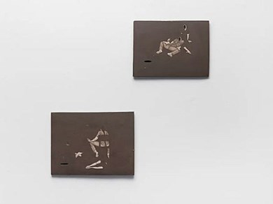 Holes on the panels not only serve as a passage to the heart of the works but also exhaust the faces of figures, only the gestures and movements persist.