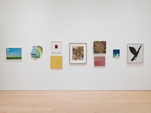 Jessie Homer French’s canvas Ghosts (2012) depicts a stealth bomber—as eerily pale as a phantom—flying past an anonymous wind farm. Lonnie Holley employs found materials in a resonant fusion of metaphor and commemoration, while Y.Z. Kami’s mandala-like painting Gold Dome (2023–24) makes reference to Eastern and Western alchemical traditions and alludes to the “inner gold” of sacred art.