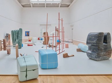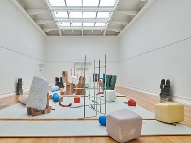 Using a wide range of techniques, they subtly explore connections between art and other creative industries, such as interior design, dance and theatre. Whilst at first they appear to be abstract, they are often suggestive of parts of the body, hinting at joints, gestures, limbs, skin and teeth.