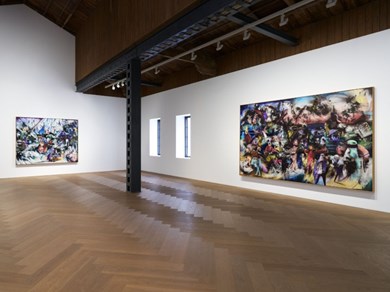 Ali Banisadr is known for his distinctive, imaginative worlds, conjured from the paint in a divinatory process akin to that of Max Ernst. His works are rich with mysterious figures and hybrid creatures, emerging from swirling layers of paint on canvas.
