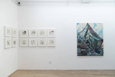 The artist’s solo exhibition 12 Volt Fire presents a survey of paintings of seemingly absurd and disparate moments related to the 1979 Iranian Revolution, with the aim of investigating its metaphysics, and of reframing it as a dynamic network of ‘actants’ that traverse socio-political, technological, mythical, and collective forces.