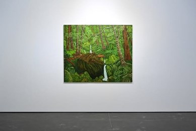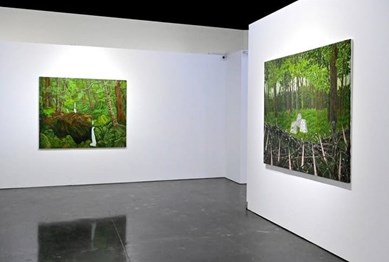 At first glance, these landscapes may seem to be paradisal, bursting with colour and life, but there is also an eeriness to the scenes: the shades of green are vivid to the point of being luminous, the foliage so dense it creates a kind of wall, blocking out the light.