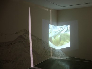 The eight paintings, the almond-wood sculpture (with the caption, "From the marzipan dried pear, to a phantom in the diamond district, I saw nothing but magic"), a pile of sugar upon which a video is projected, and various ornamental objects forms the core of this study. Sweetness and evil are an additional pair that accompanies Sugar in this study.