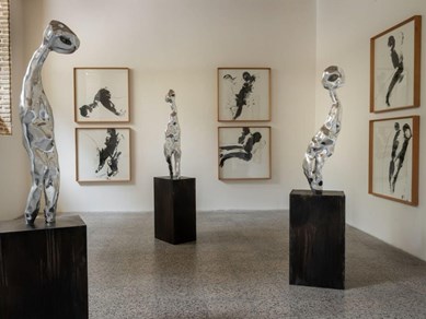 The human figures, which began their journey with body prints titled "Beyond and Above" about ten years ago, now rest alongside their complementary sculptures in "Embodiment”.