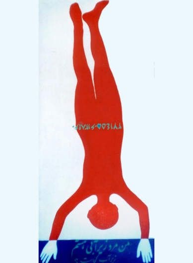 روی پنلها و جعبهها فیگوری در مقیاس انسانی، معلق و شبیه به شبحی فاقد جنسیت (فیگورها از روی غزاله علیزاده نقاشی شده بود) و با ترکیببندی خاصی همراه با نوشتههایی از پیلارام بر قابها نقش بسته بود. نوشتهها غالباً جملات «من آب باز زبردستی هستم» و «من مرد زیرآبی هستم، زیر آب کجاست» بودند، همراه اعدادی که کنار هم و یا جداجدا نوشته شده بودند. برخلاف کارهای نوشتاری پیشین دیبا، اینبار در نوشتهها بار معنایی ارجح به قالب فرمی آنهاست. انگار او میخواسته است مفهومی تازه از رابطهی تصویری همتراز با مقیاس انسانی و خط فارسی را به مخاطب برساند.