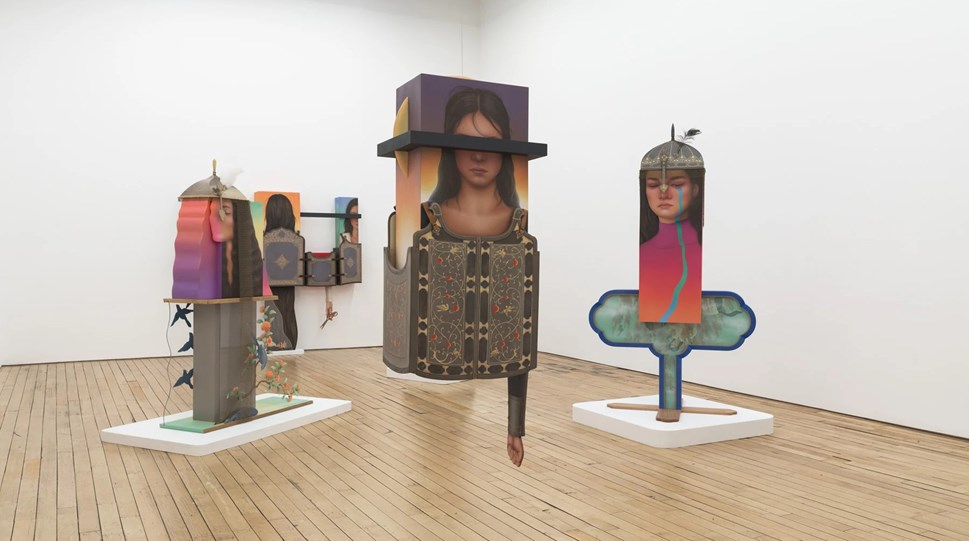 در این نمایش خسروی نخستین مجسمههای خود را ارائه داده است؛ آثاری که بهطور کامل از دیوار جدا شده و در مرکز گالری قرار گرفتهاند. برخی از آنها بهصورت ایستاده روی پایه و برخی از سقف آویزان شدهاند و به این ترتیب همچون ارتشی از زنان جنگجو، مخاطب را دربرمیگیرند.