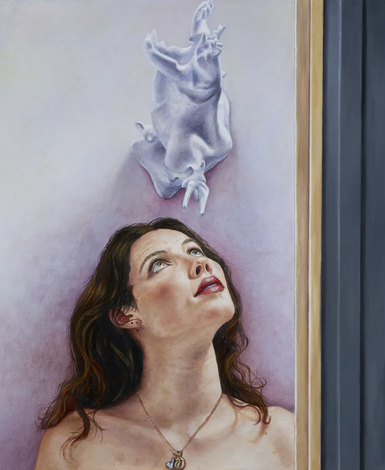 نازنین پوینده | راز دختر مو خرمایی | 1403 | رنگ روغن روی بوم | 65 × 54 سانتیمتر