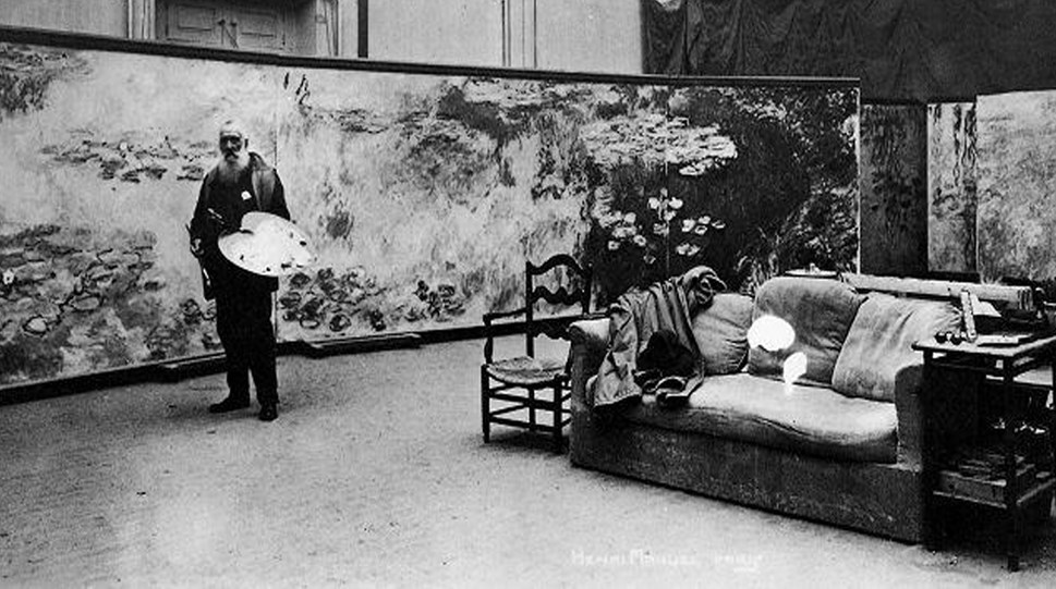 کلود مونه در حال کار روی مجموعهی «نیلوفرهای آبی» | منبع عکس: claude-monet.com