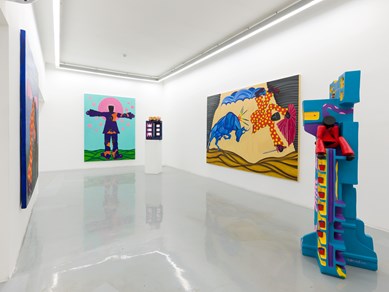 در غالب فرميك پيوندی است از عناصر نقاشانهی روايی ايرانی برگرفته از تئاتر سنتی خيمهشبازی در درون پيكرهبندیهايی الوان و امروزين و در غالب محتوايی بيانگر پارادايمهايی كهن كه تا لحظه اكنون، امتداد میيابد.///