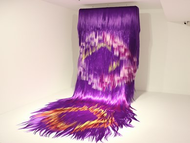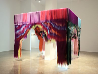 نمایش هیوا علیزاده در بنیاد لاجوردی، گزیدهای از طراحیها، ابژههای مویی و یک اثر تعاملی بزرگ اندازه است. ابژههای رنگین او ادراک و شیوه ارتباطی ما با محیط پبرامونی را دستخوش تغییر میکند و دستکاری عمیق اما ظریف سازوکار ادراک حسی، کار ویژه اساسی آنها است. میتوان آنها را زنجیرهای از بازیها با قوه تخیل مخاطبان دانست. ///