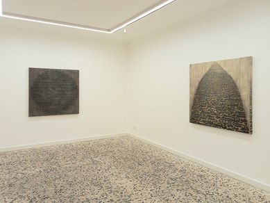 در یکی تکرار با نوکردن سیاهمشقهای سنتی در قالب فرمهای ازلی و دیگری با نو کردن فرمهای معماری و قالیبافی در قالب نوارهای بوم نقاشی معنا میگرفت. از سویی هر دو طنینی آشنا از گذشته را در مقابل فراموشی بشری زمزمه میکردند.