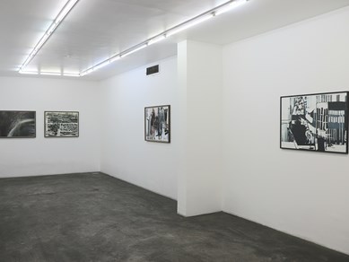 در دیگر روند کاریاش، مواجههای مستقیمتر با سطح—معمولاکاغذ—دارد؛ رنگ را اعمال میکند تا بعد آن را بخراشد، لایههای رنگ و کاغذ را میکَند و کنار میزند. خودش این روندها را نبردهای بیپایانی توصیف میکند که همیشه در تلاش است بر آنها غلبه کند.